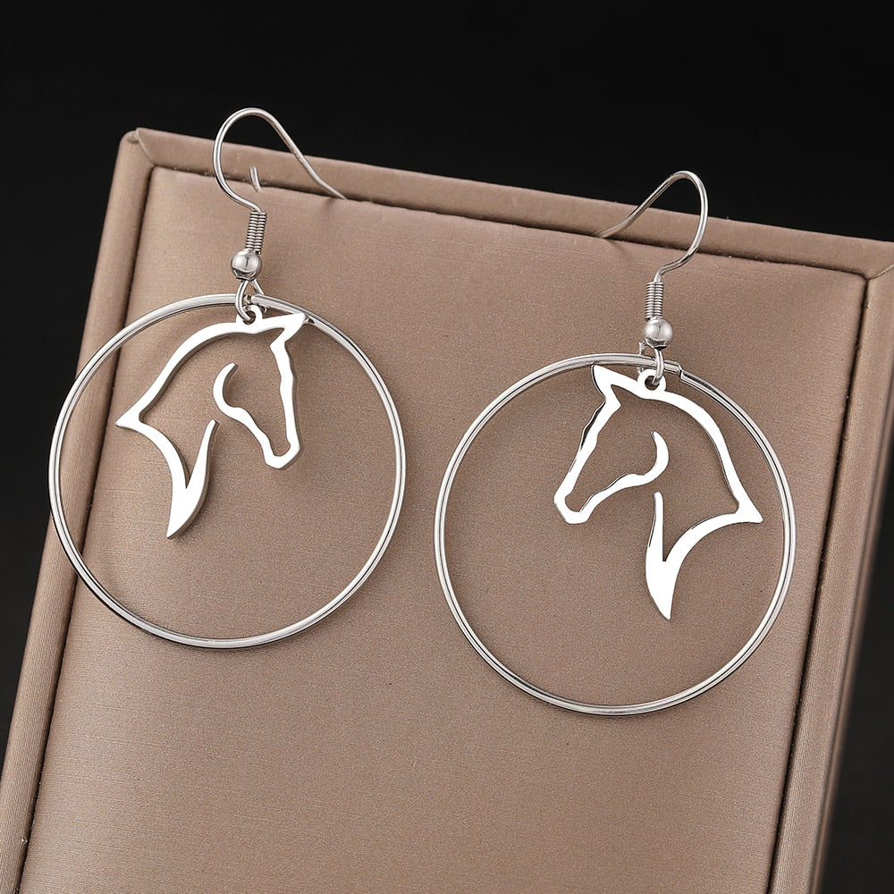 Ces boucles d'oreilles créoles célèbrent le monde équestre avec simplicité et charme. Leur motif cheval apporte une touche graphique, joyeuse et accessible, parfaite pour celles qui aiment afficher un style à la fois décoratif et élégant.