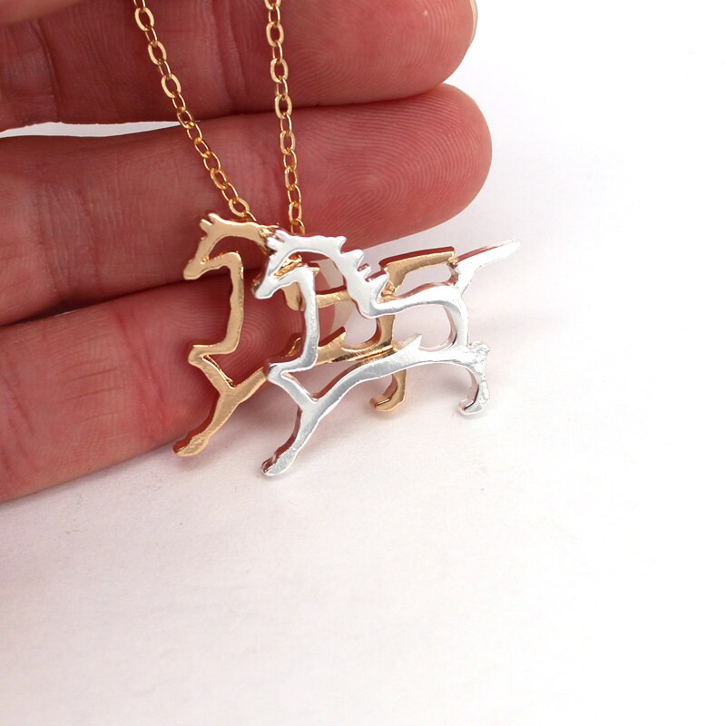 Deux chevaux qui ont grandi ensemble et galopent côte à côte, ce collier rend hommage à l'esprit libre et à la complicité du duo. Son pendentif solide reflète la force et la fidélité, idéal pour les passionnés de chevaux qui voient leur compagnon comme une âme sœur. Le design en maille Jaseron apporte une touche élégante et robuste, parfait pour porter au quotidien comme pour les occasions spéciales.