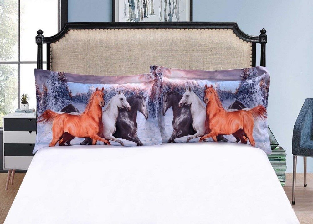 Évoquant l'hiver et la nature, cette housse de couette montre trois chevaux qui trottent dans une forêt enneigée. Un esprit hivernal charmant se dégage, idéale pour les amoureux des paysages paisibles et des décors réalistes qui donnent du caractère à la chambre.