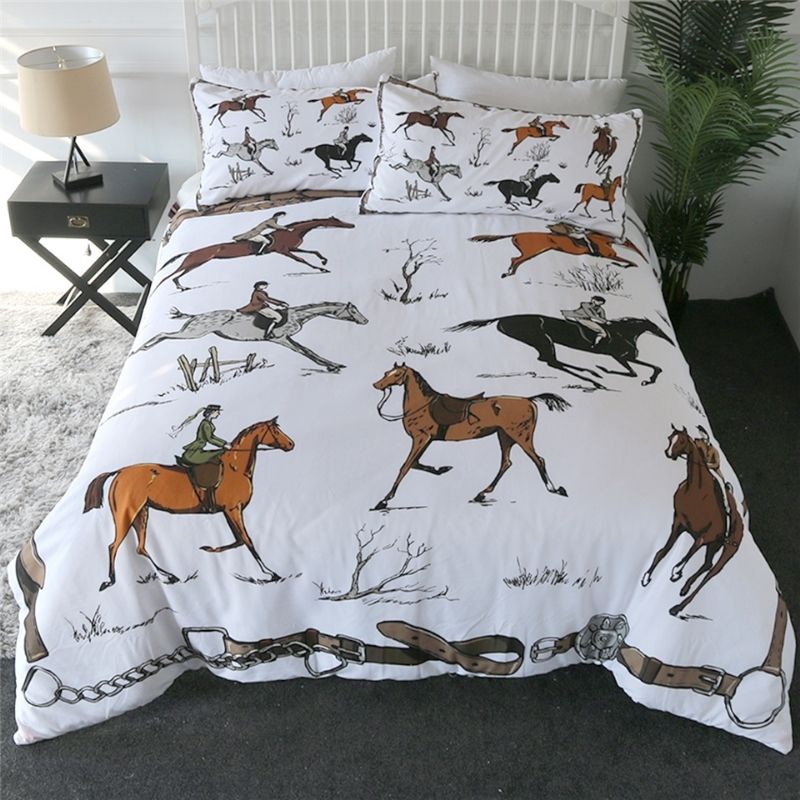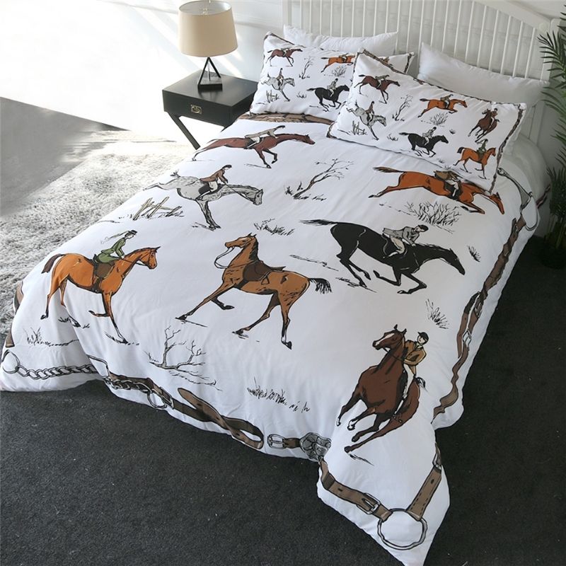 Plongez dans l'ambiance d'un grand concours d'équitation avec cette housse de couette. Son motif capte l'énergie des cavaliers et des chevaux en pleine performance, pour une ambiance décorative, joyeuse et chaleureuse dans votre chambre.