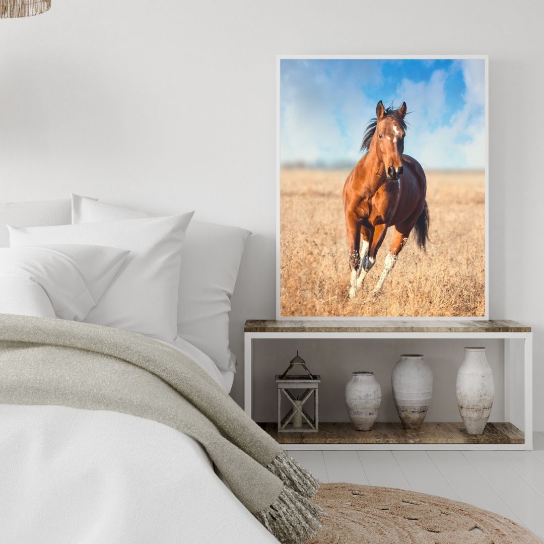 Ce poster cheval à la campagne apporte une énergie calme et chaleureuse à n’importe quelle pièce. Avec ses couleurs riches et sa scène pastorale, il crée instantanément une ambiance reposante dans une chambre ou un bureau. Un soupçon de poésie et de nature pour inspirer vos moments de détente et de créativité. Il s’intègre facilement à tous les styles et apporte une présence apaisante.